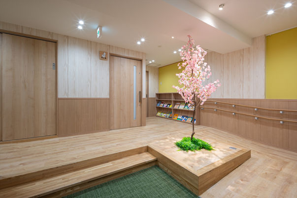 内装デザインは法人名から着想を頂き「自然」をモチーフに考えました。エントランスやホールは森を表現し、保育室には家型の門を作って天井には空を表現し、幼児用トイレは水の中を表現しフリースペースは太陽をイメージしてデザインしました。限られた室内で少しでも子供たちが楽しめるよういろいろと工夫しています。今回ピクトもせっかくなのでグラフィックデザイナーさんに依頼してイラストを描いていただきました。手間は掛かりましたが園児たちが楽しく過ごせる施設になったと思います。